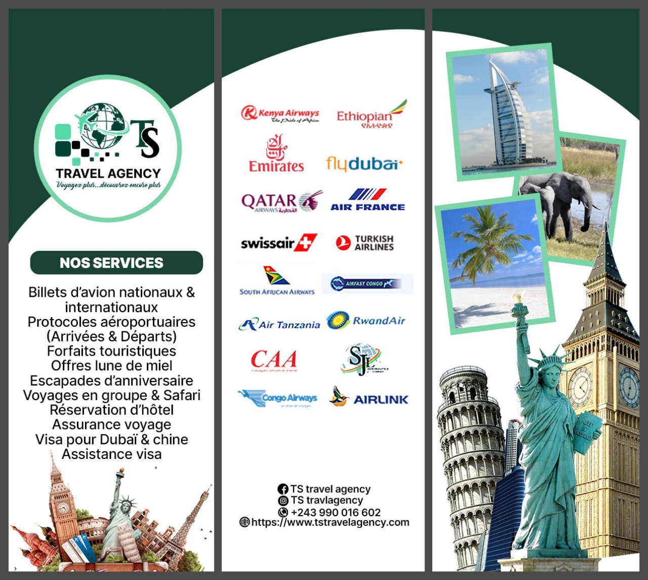 Bienvenue chez TS Travel Agency votre partenaire de confiance pour tous vos voyages à travers le monde. Basée à Lubumbashi en République Démocratique du Congo (RDC)